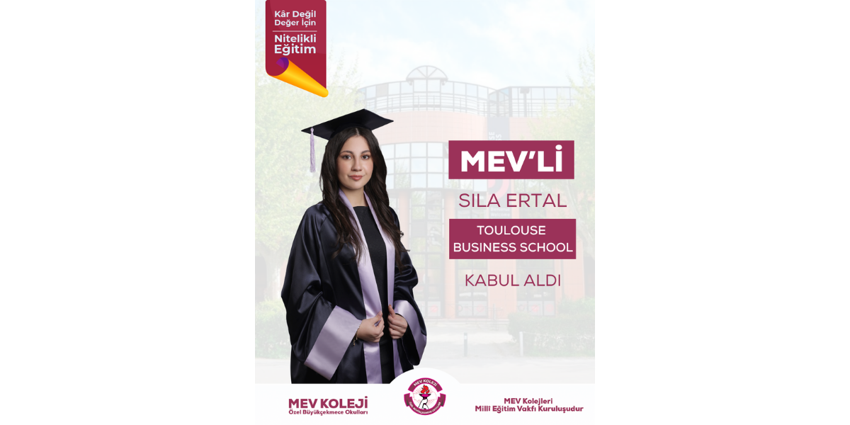 Okulumuzun 12A sınıfı öğrencisi Sıla Ertal, azmi ve kararlılığıyla önemli bir başarıya imza attı. Dünyanın saygın eğitim kurumlarından Toulouse Business School (TBS Education)’ın Management bölümünden kabul alan Sıla, geleceğe emin adımlarla ilerliyor.